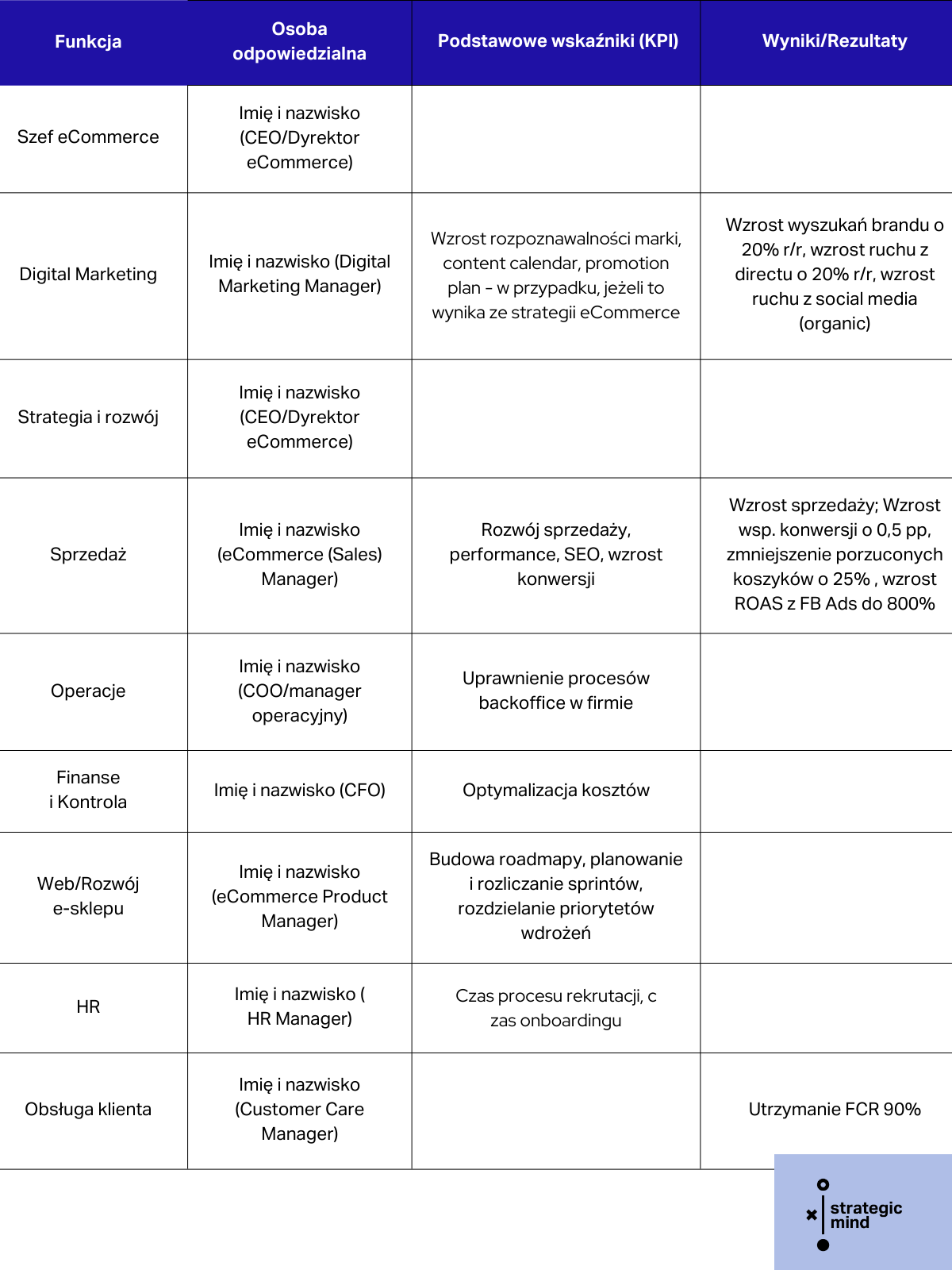 Przed przystąpieniem do budowy zespołu należy określić strategię sprzedaży internetowej i marketingu. Strategia eCommerce jest podstawą do ustalenia, jakie działania zespół powinien podejmować, a co za tym idzie – jak ma wyglądać jego struktura i jakie osoby powinny zostać zatrudnione.